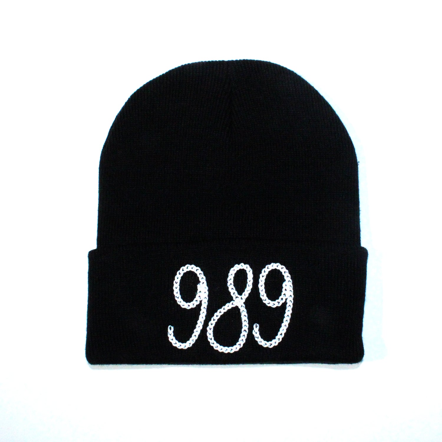 989 Chainstitch Style Beanie - Black/ White