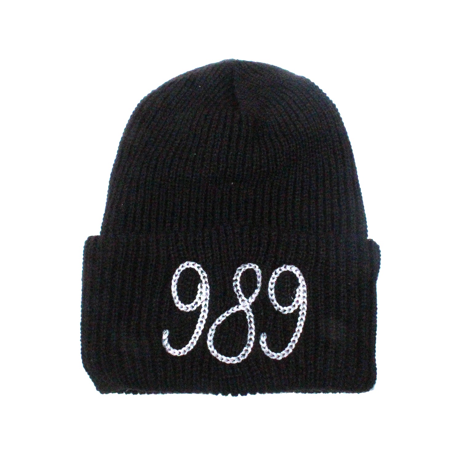 989 Chainstitch Style Thick Knit Watch Beanie - Black/ White