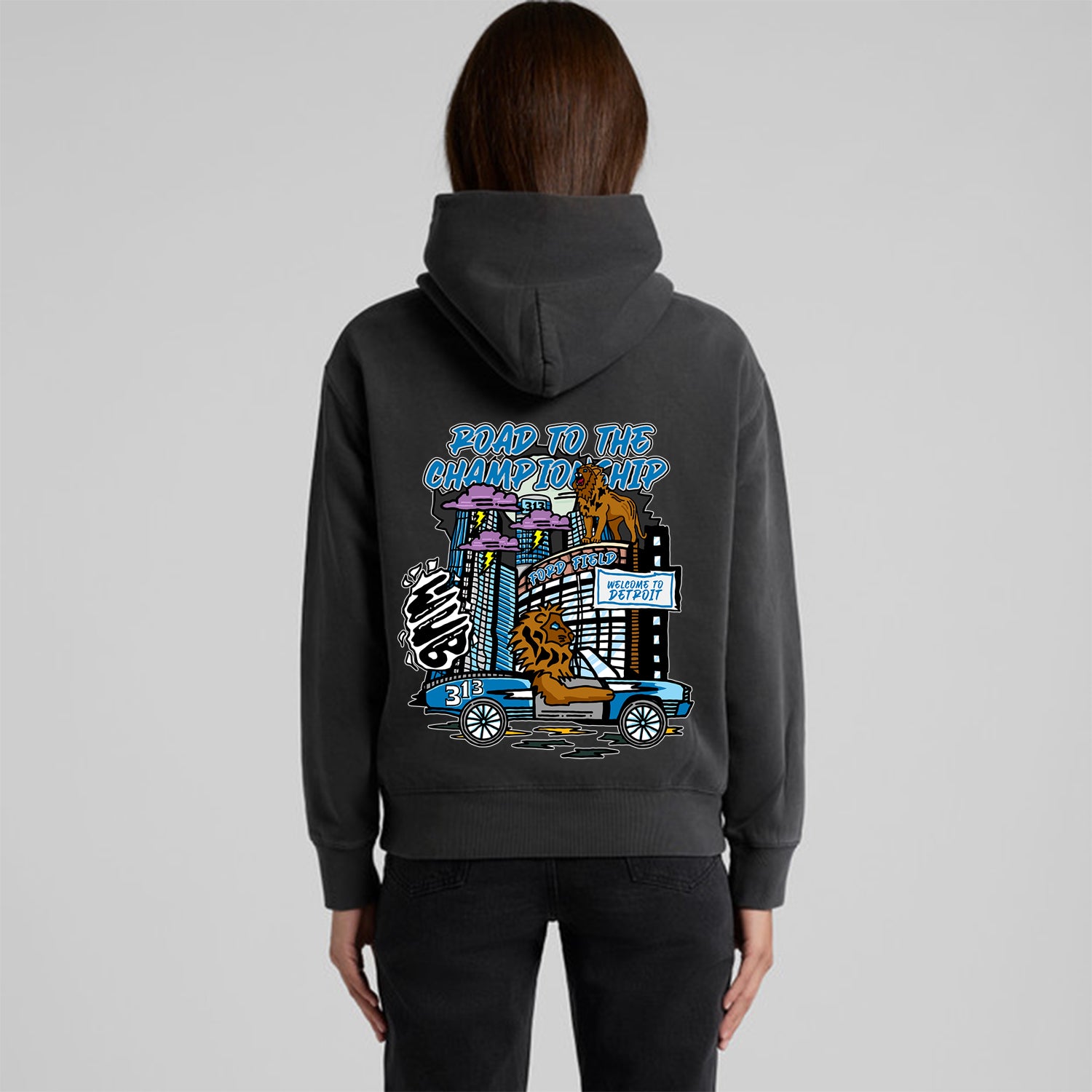 DETROIT ROAD TO THE CHAMPIONSHIP LADIES FADED HOODIE - GREY