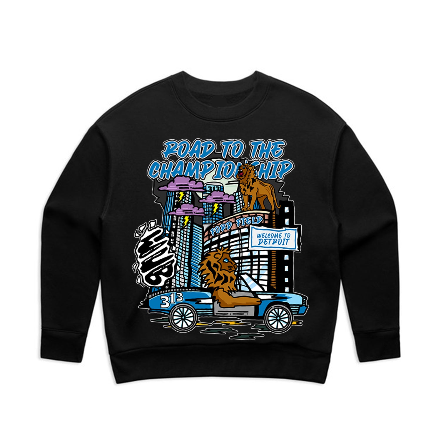 DETROIT ROAD TO THE CHAMPIONSHIP LADIES RELAXED CREW - BLACK