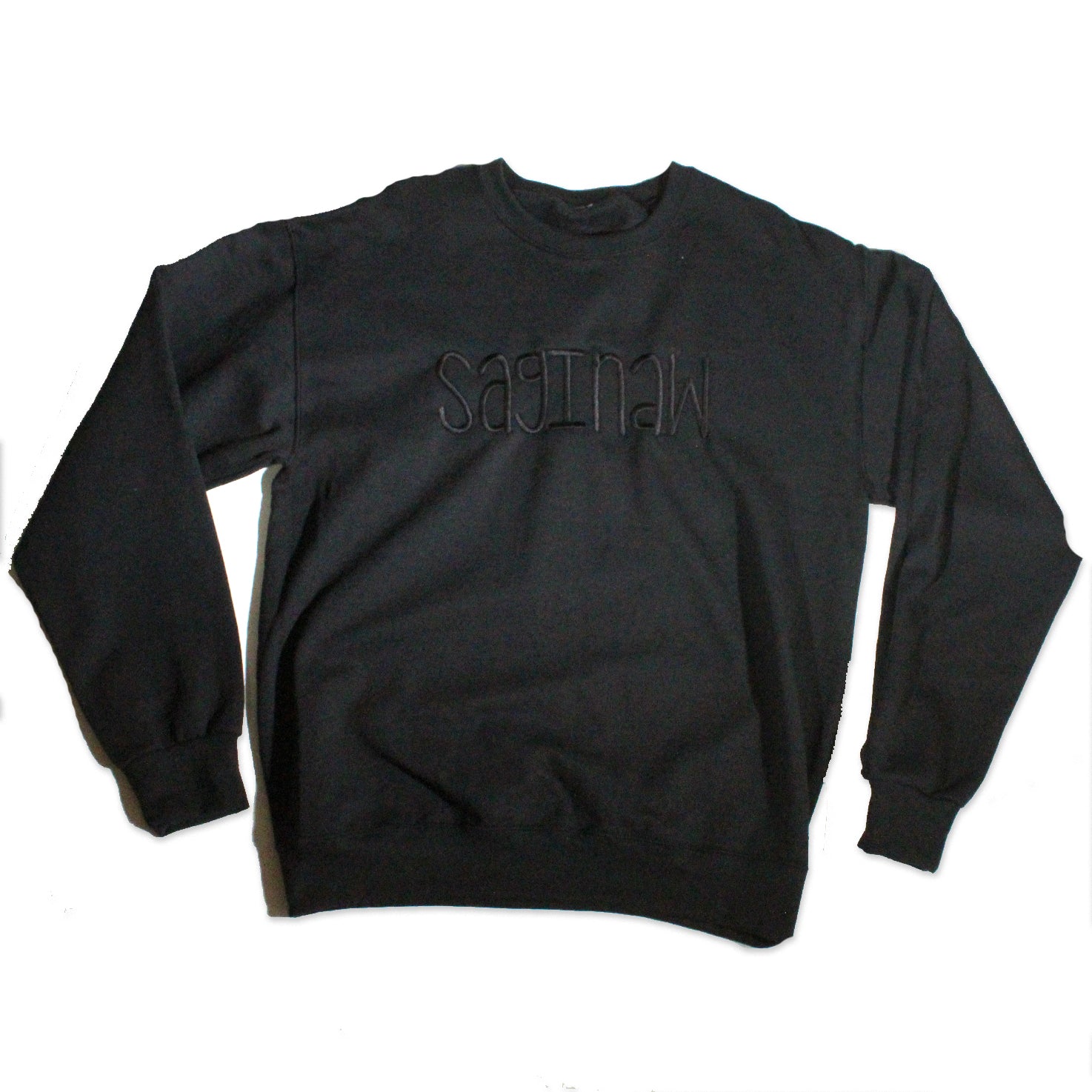 SAGINAW EMBROIDERED TONAL CREWNECK - BLACK