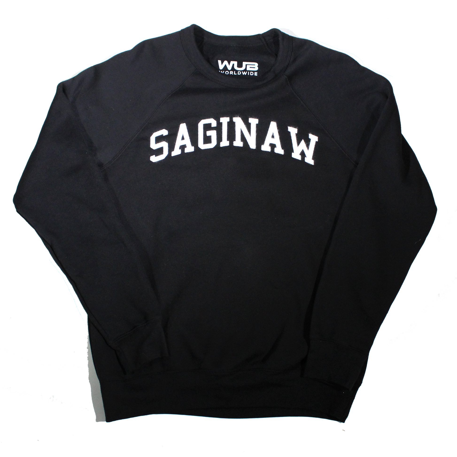 SAGINAW SPELLOUT FELT CREWNECK - BLACK